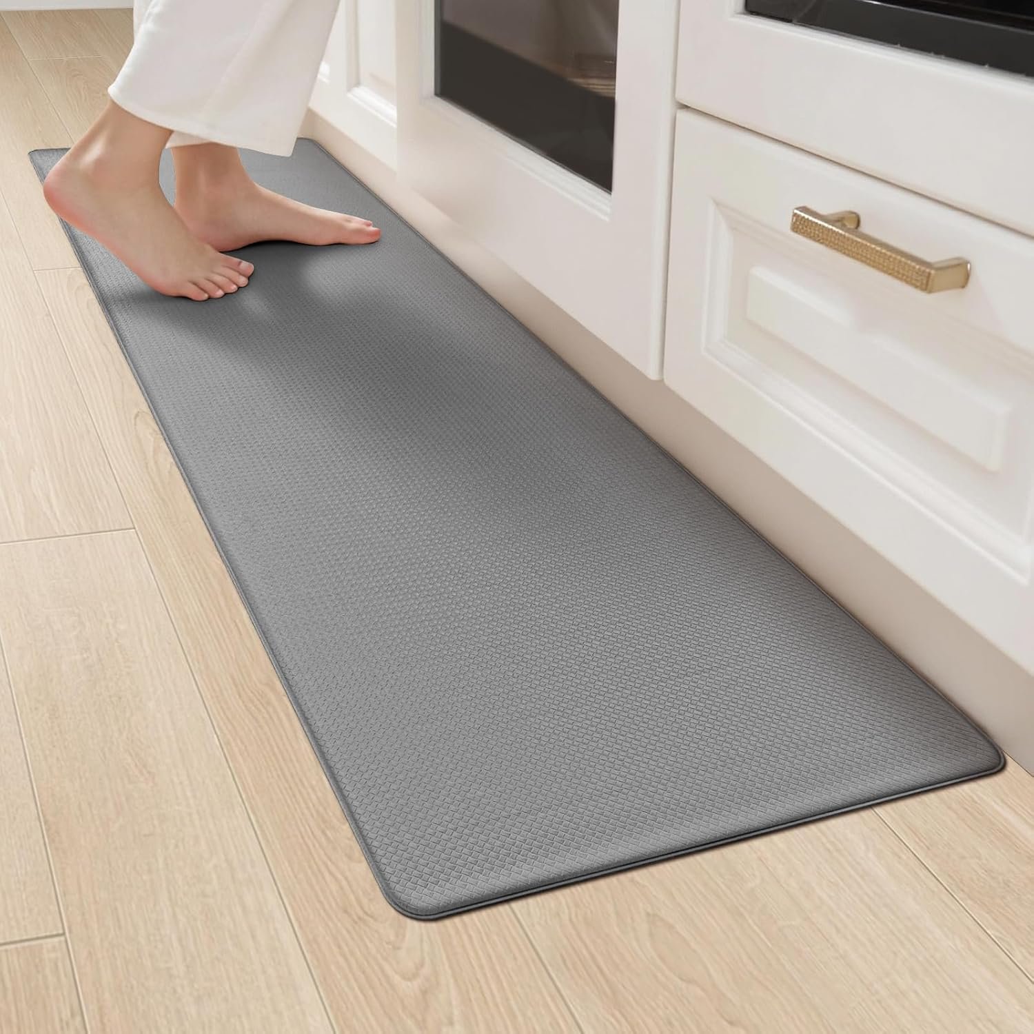 Bien Hecho: Nuestros alfombras de cocina está hecha de goma impermeable y resistente a las manchas, lo que puede aliviar la fatiga de estar de pie durante mucho tiempo y evitar que los artículos se caigan y los objetos afilados rayen el piso