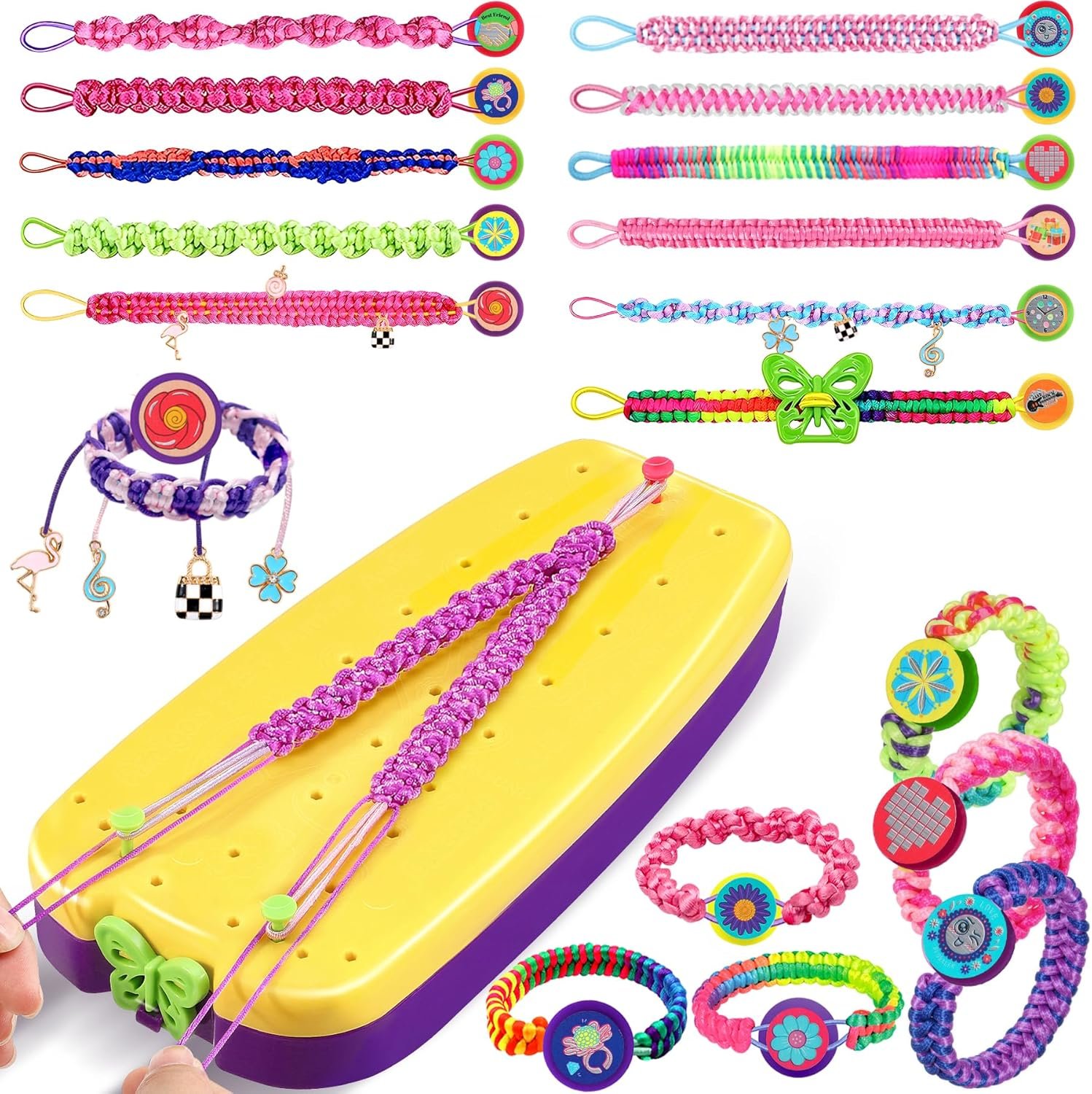 - 【¡Kit 2-en-1 para Expertos!】 – Crea pulseras de la amistad únicas con nuestro fabricante de pulseras que combina un telar de tejido + 2 tableros de espuma (cuadrado y redondo). Diseña más de 50 estilos diferentes – desde clásicos hasta 3D – y guárdalos en la caja de pulsera con compartimento secreto. ¡Perfecto para manualidades niña de 7 años en adelante