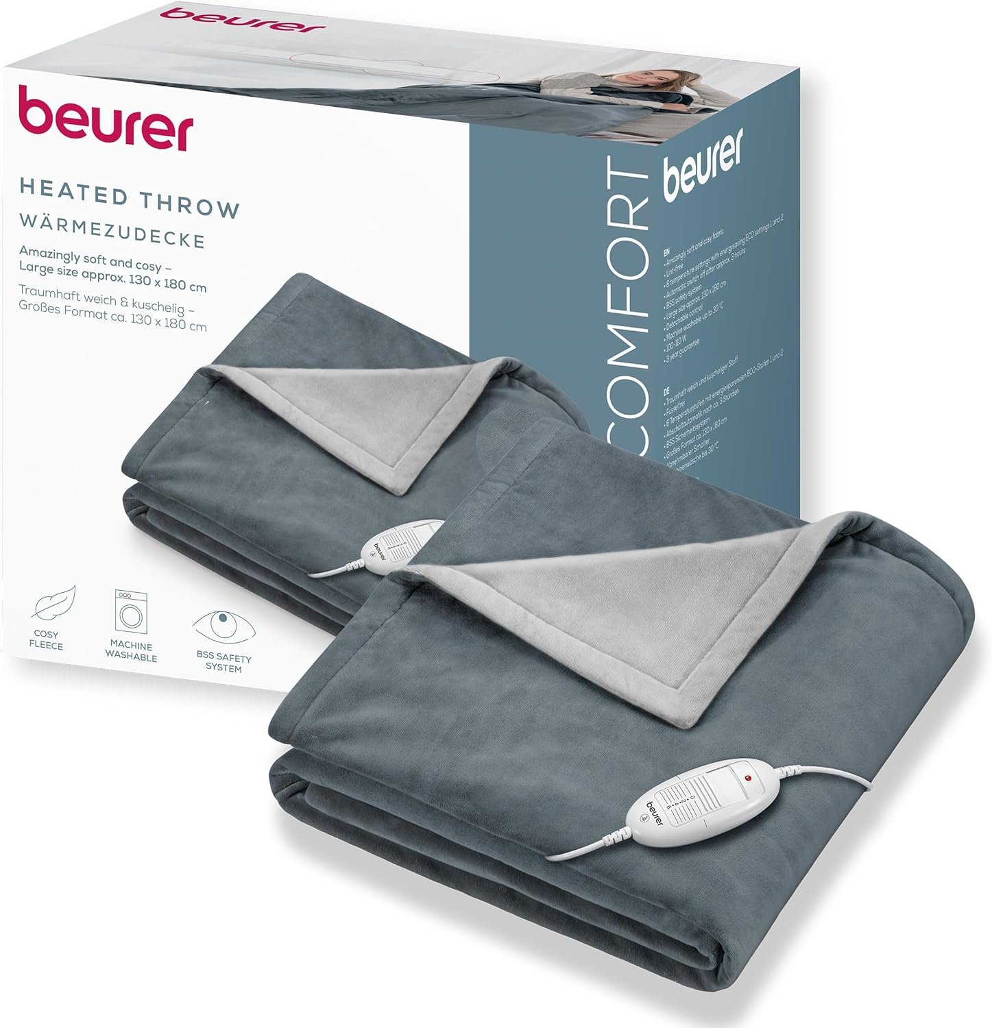 SEGURIDAD DE USO: La desconexión automática después de unas 3 horas y el sistema de seguridad integrado de Beurer garantizan el máximo nivel de seguridad – en caso de avería, la manta eléctrica se desconecta automáticamente